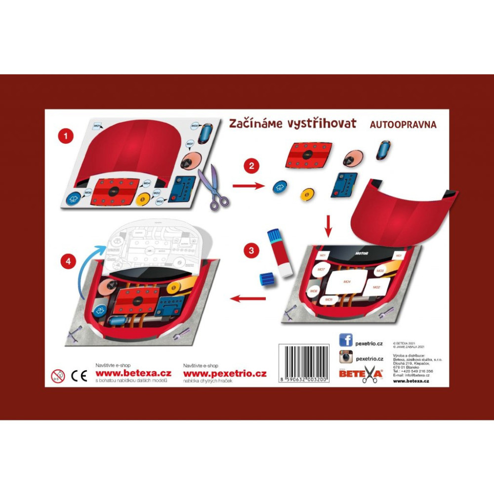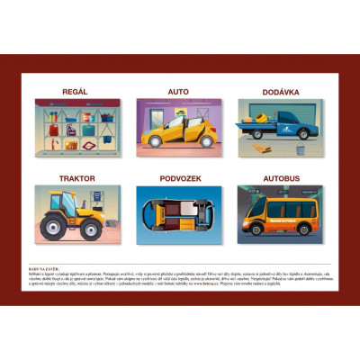 Vystřihněte si papírovou skládačku: vystřihněte jednoduché dílky a ty pak dolepte na bílá místa na podložce - vytvoříte hotové obrázky. U některých motivů nalepte pouze část dílku - chlopeň s ohybem: nepřilepenou část dílku pak lze přiklápět nebo odklápět, tzn. přikrývá nebo odkrývá spodní obrázek, který souvisí s vrchním obrázkem ( kapota přikrývá motor, dveře auta odkrývají interiér atd. ) Vystřihovánka rozvíjí u dětí jemnou motoriku a představivost. Slouží také jako vynikající didaktická pomůcka nejen v domácnostech, ale i ve školách a školkách.